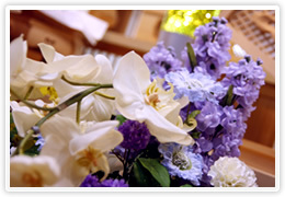 ご葬儀やその後のご供養にあたっては、仏壇・仏具やお供え用の生花、通夜・中陰料理、新盆をはじめとしたご法要まで万全の準備が必要です。こうした各種の関連サービスに関しましても、経験豊富な当ホールにお任せください。